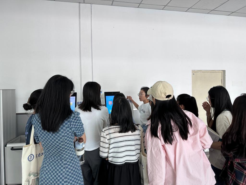 “深度体验自助借还机”即由情报信息部的一线图书馆馆员带领新生进行自助借还图书,帮助新生了解使用自助借还机的注意事项,切实提高新生实际操作自助借还机的能力。