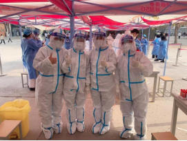 闻风而动,闻令而行,关键时刻当先锋、做表率,是图书馆人面对疫情的本色担当。图书馆接到校组织部安排的首批校内核酸检测志愿者工作任务,第一时间安排部署,组织我馆7名教职工参加核酸检测志愿者工作。他们既要保证图书馆正常开放,又要承担核酸检测的艰巨任务,连续7天志愿者们每天7:00准时抵达核算采样点,穿上厚重的防护服,变身暖心的“大白”,有条不紊地开展核酸检测工作,不厌其烦地重复着相同的工作流程,确保我校核酸检测工作高效有序开展。尽管口罩的勒痕清晰可见,但他们仍不避艰辛、不畏艰险,奋战在核酸检测抗疫一线,为我校学生核酸检测保驾护航。充分彰显了教育人甘于奉献、勇挑重担的大爱担当。