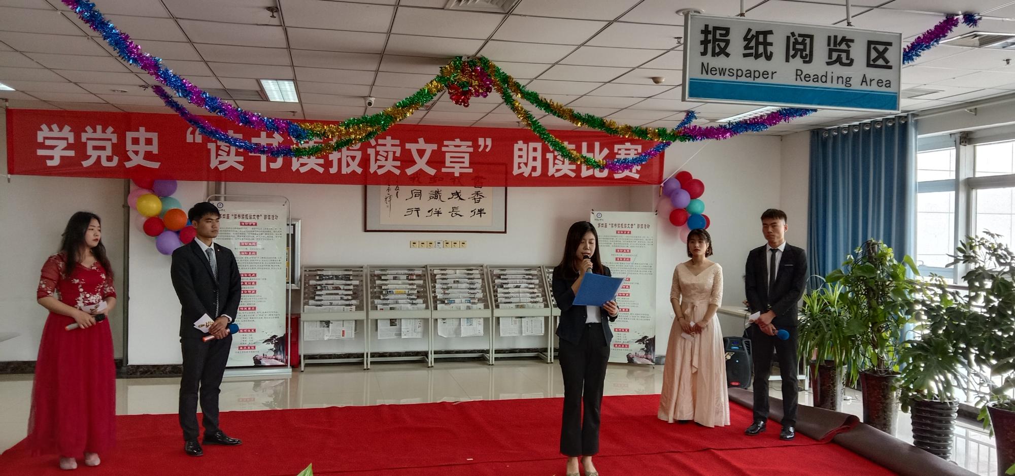 为积极响应“网上重走长征路”暨推动“四史”学习教育活动的开展,让大家更好的学习‘四史’即党史、新中国史、改革开放史、社会主义发展史的重要意义。另一方面为了更好的让学生利用图书馆的资源,充分发挥图书馆的作用。引导广大在校大学生学生多读书,读好书,形成读书热潮,陶冶性情,丰富人文精神,培养文化人格,提升大学生素养,同时促进校风、学风以及文明校园的建设,弘扬民族文化。河南工学院图书馆在二楼西期刊部举办了学党史“读书读报读文章”朗读比赛活动。