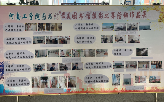 5月6日,摄影比赛拉开帷幕,历时一个月圆满落幕。比赛共进行了三个阶段:第一,征集作品;第二,评选作品;第三,展出作品。图书馆流通部通过广泛宣传,在河南工学院微信公众号发布活动通知,同时联系了河南工学院社联和河南工学院摄影协会进行了大力宣传,增大活动的影响力。活动进行中的时候,我们设立了公共邮箱供同学们投稿,共征集参赛作品近百幅;在接近尾声的时候,对上交的作品进行整理,上传至投票系统以供师生选出自己心目中的“最美图书馆”。我们收到的投稿摄影作品,内容丰富,寓意深刻,用镜头展现了一个丰富多彩的图书馆美景。