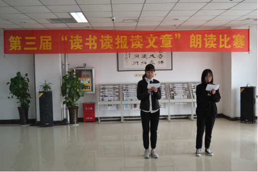 为了让广大师生充分利用图书馆的资源,更好地发挥图书馆的作用。河南工学院图书馆积极响应,4月11日在二楼西期刊部举办2019年第三届“读书读报读文章”朗读比赛活动。旨在激发广大学生的阅读热情,营造浓厚阅读氛围,充分调动同学们阅读积极性,培养健康的阅读兴趣,提高文学欣赏水平。