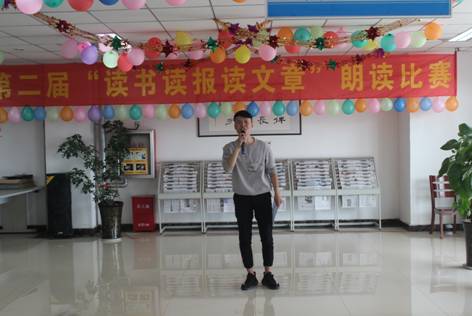 为了更好的让学生利用图书馆的资源,充分发挥图书馆的作用。引导广大在校大学生多读书,读好书,形成读书热潮,接受中外文化的熏陶,陶冶性情,丰富人文精神,培养文化人格,提高大学生素养,同时促进校风、学风以及文明校园的建设,弘扬民族文化。我们图书馆积极响应,在二楼西期刊部举办第二届“读书读报读文章”朗读比赛活动。旨在激发广大学生的阅读热情,营造浓厚阅读氛围,充分调动同学们阅读积极性,培养健康的阅读兴趣,提高文学欣赏水平。