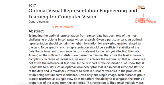 四,进入文章详情页,可以查看该文章的作者,发表时间以及摘要等相关信息。可以直接点击右上角的下载按钮进行下载或在线全文阅读。